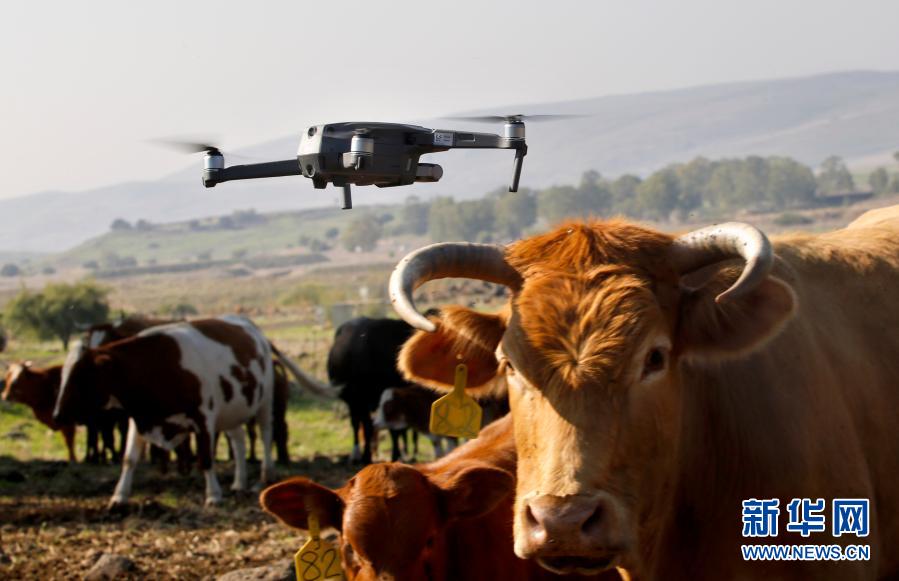 這是11月23日在戈蘭高地拍攝的正在牧牛的無(wú)人機(jī)。