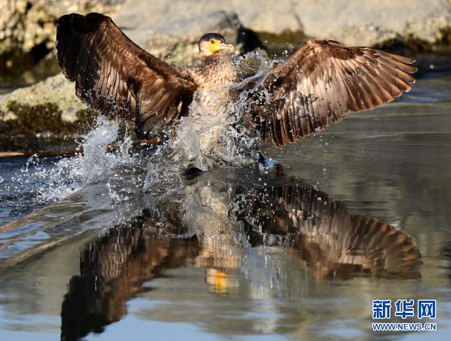12月20日,一只鸕鶿在科威特杰赫拉省海邊覓食。新華社發(加齊攝)
