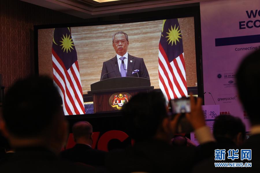 12月21日,在馬來(lái)西亞吉隆坡舉行的世界華人經(jīng)濟(jì)峰會(huì)上,大屏幕播放馬來(lái)西亞總理穆希丁的視頻講話(huà)。新華社發(fā)