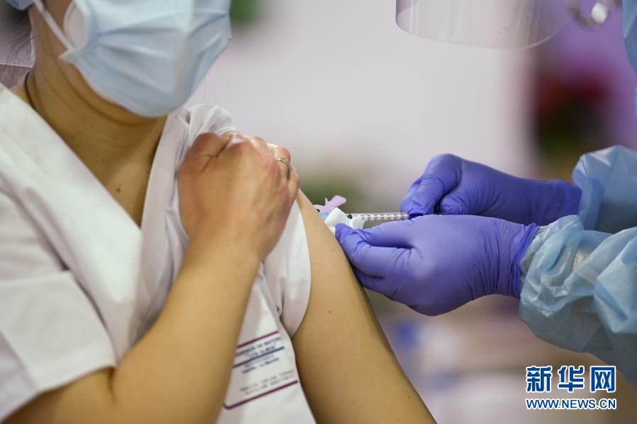 12月27日,在羅馬尼亞首都布加勒斯特一家傳染病醫院,一名醫務人員在接受新冠疫苗接種。新華社發(彼得雷斯庫攝)