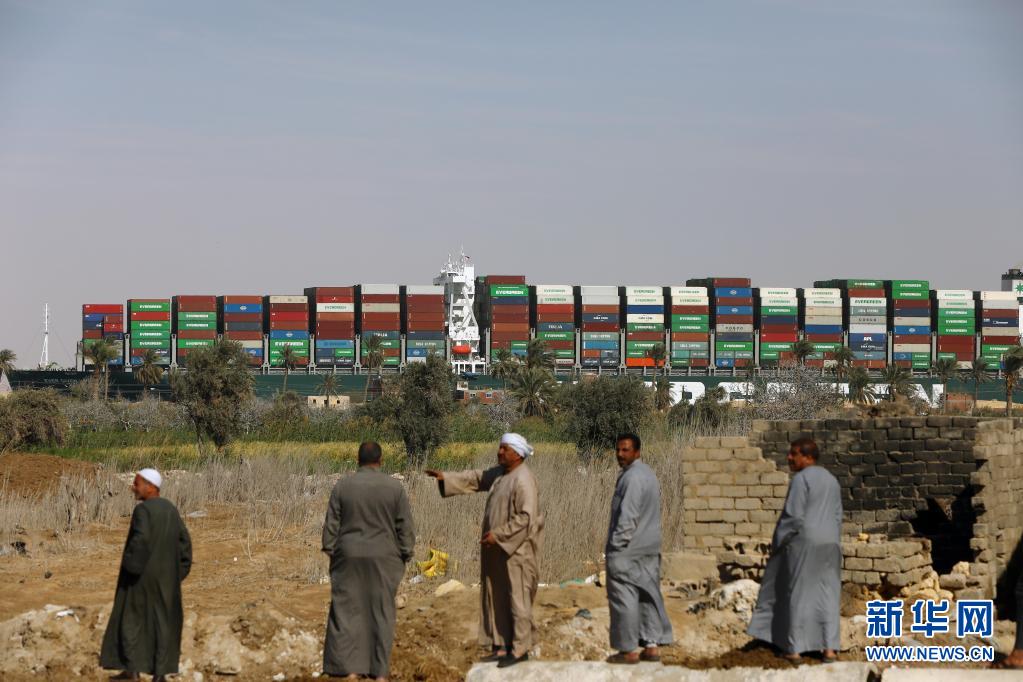 這是3月29日拍攝的移動至埃及蘇伊士運河正常航道上的重型貨輪。新華社記者 鄔惠我 攝