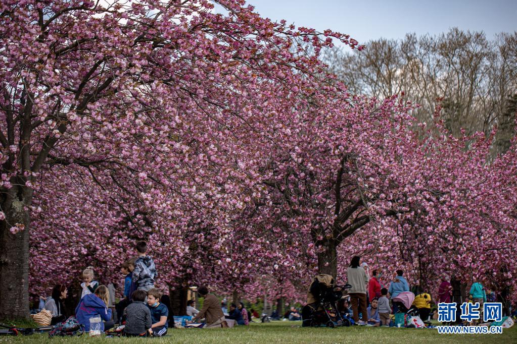 4月20日,人們在法國巴黎近郊的國璽公園欣賞櫻花。