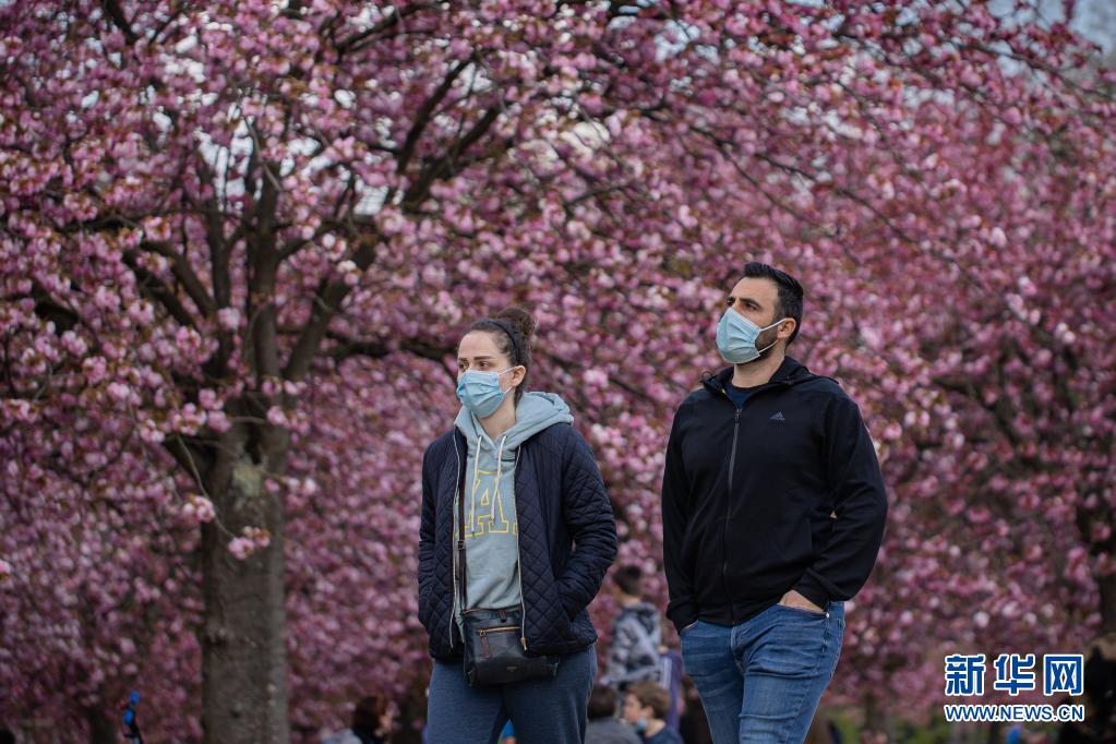 4月20日,人們?cè)诜▏屠杞嫉膰t公園欣賞櫻花。
