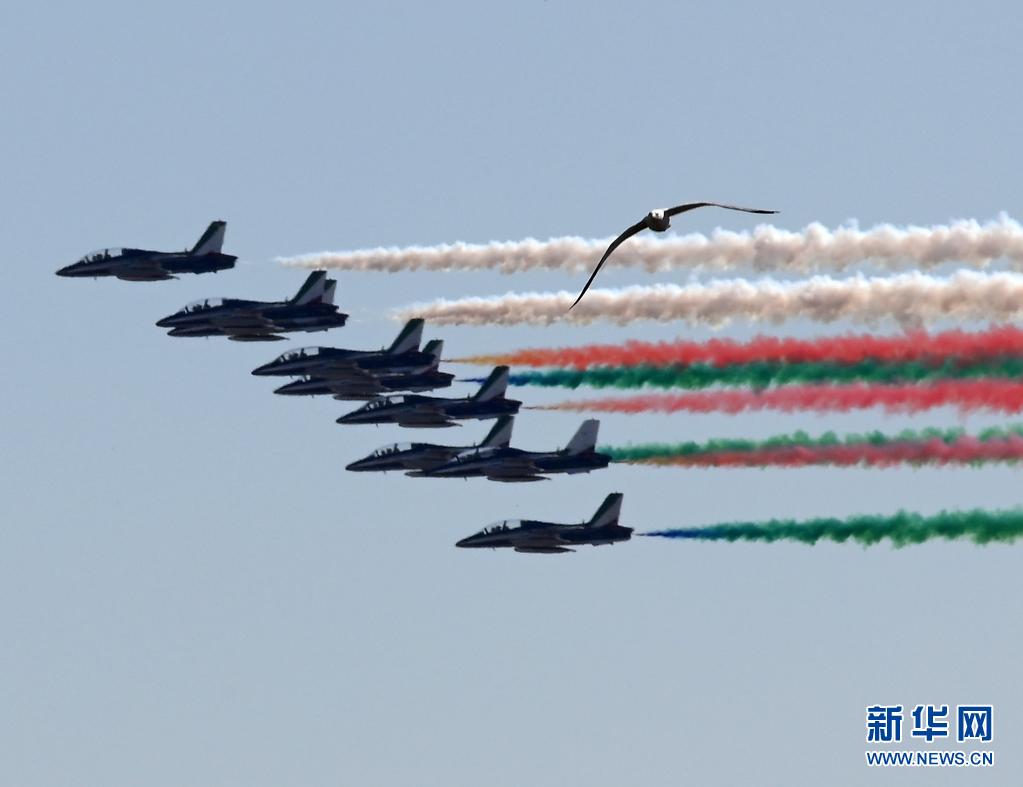 4月25日,意大利“三色箭”飛行表演隊在羅馬舉行的紀念儀式上噴出代表意大利國旗顏色的紅白綠三色煙霧。