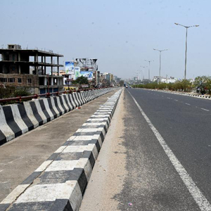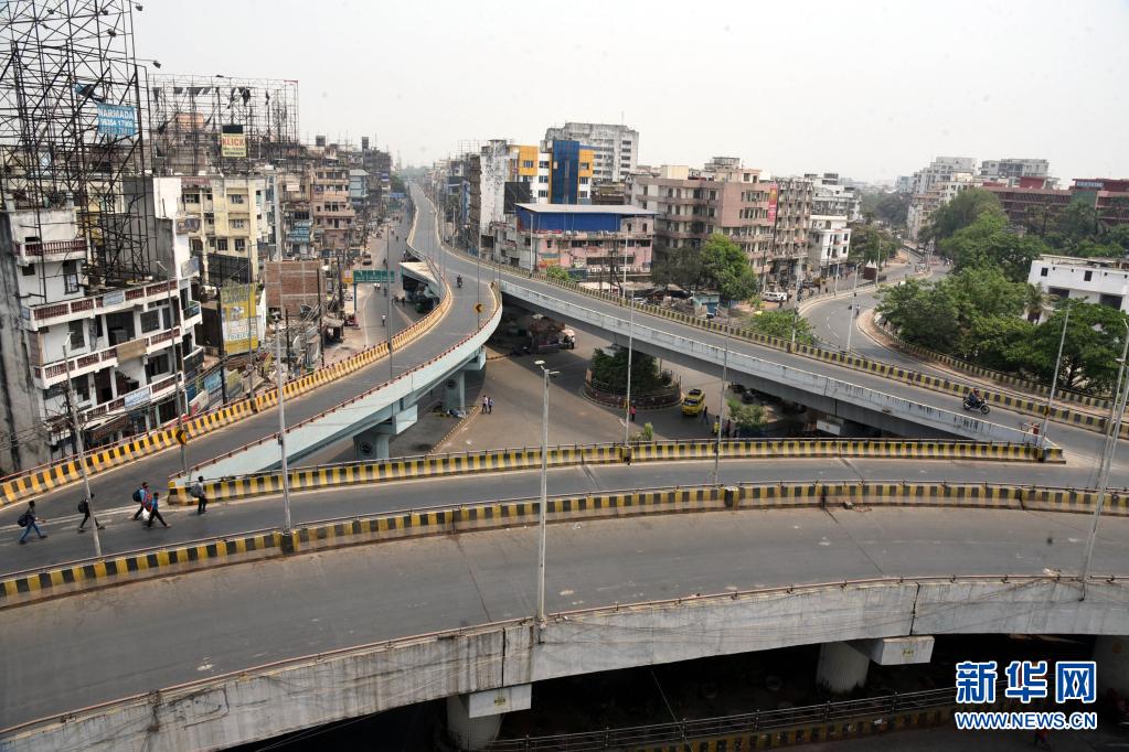 這是5月5日在印度巴特那拍攝的實施部分封鎖措施下的道路。