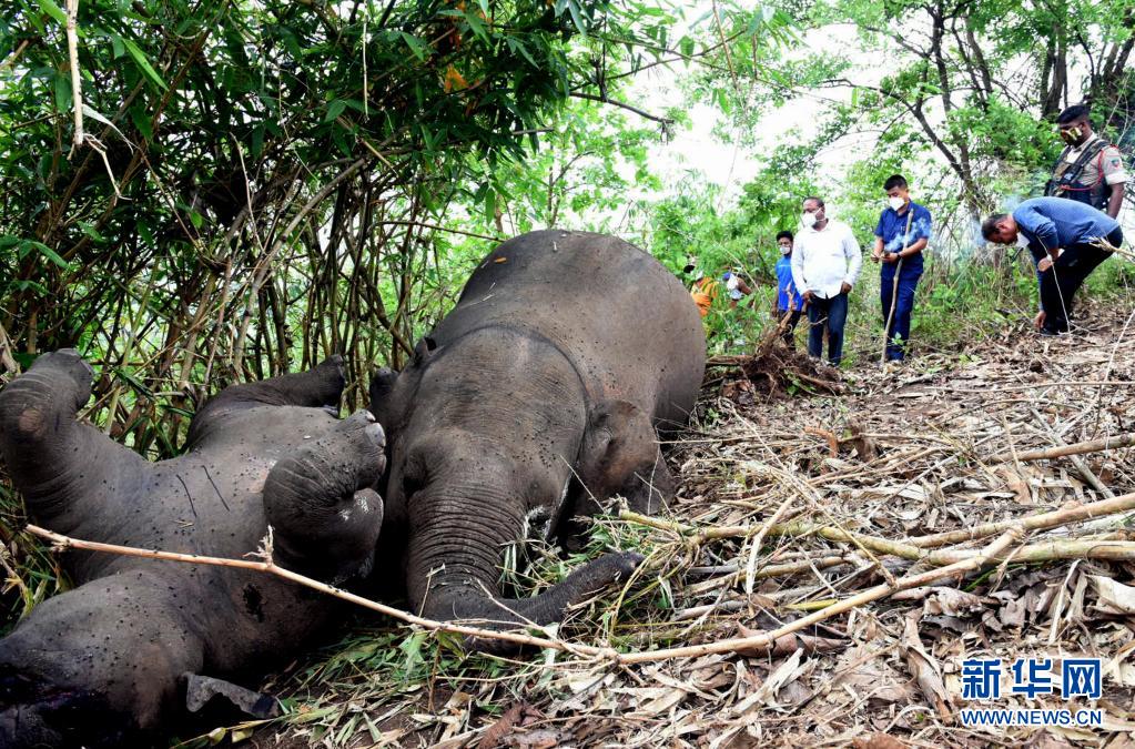這是5月14日在印度阿薩姆邦納加奧恩地區拍攝的死去的象。