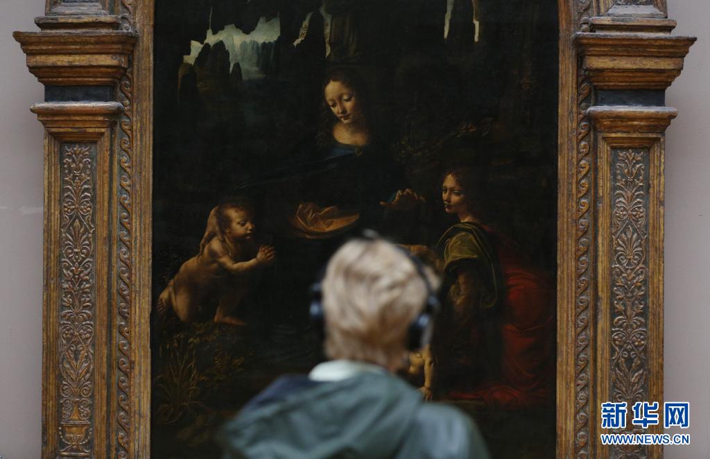 5月19日,一名女子在法國巴黎的盧浮宮博物館參觀達·芬奇名畫《巖間圣母》。