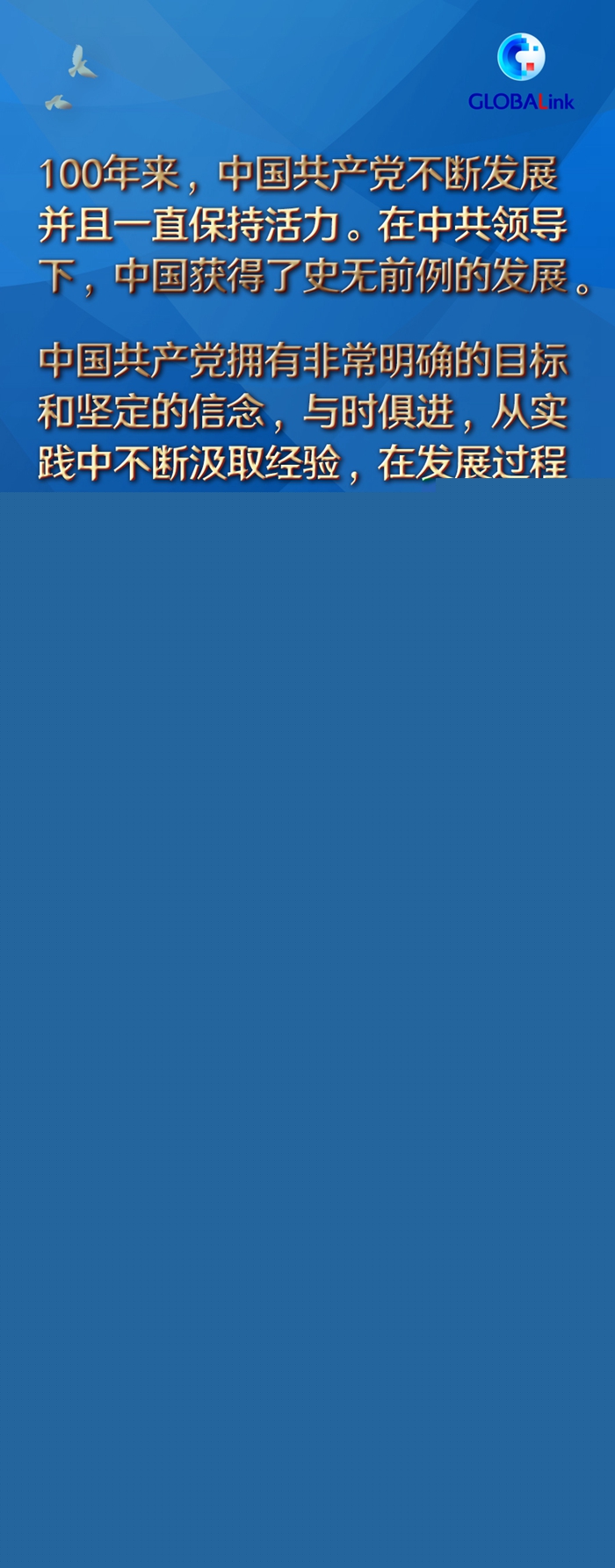 阿馬爾對(duì)中國(guó)共產(chǎn)黨成立100周年表示熱烈祝賀。他說(shuō),中國(guó)共產(chǎn)黨擁有非常明確的目標(biāo)和堅(jiān)定的信念,與時(shí)俱進(jìn),從實(shí)踐中不斷汲取經(jīng)驗(yàn),在發(fā)展過(guò)程中以人為本,這些都是中共能夠不斷發(fā)展并且一直保持活力的重要原因。