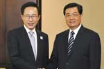 胡錦濤會(huì)見韓國總統(tǒng)李明博